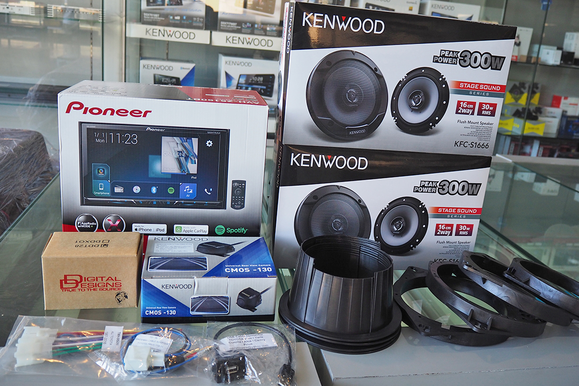 อุปกรณ์ในระบบ 1.จอ PIONEER AVH-Z5150BT 2.หน้ากากตรงรุ่น YARIS 3.กล้องมองหลัง KENWOOD CMOS130 4.ลำโพง DIGITAL DESIGNS DDT28 5.ลำโพง KENWOOD KFC-S1666 2คู่